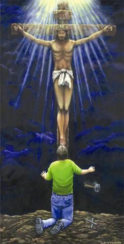 Luật xưa dậy rằng “mắt đền mắt, răng đền răng”, nhưng Thầy mời gọi con hãy dùng tình yêu mà xoá bỏ mọi hận thù, ghen ghét. Vì yêu mến Thầy, con hãy tha thứ cho tha nhân. Một khi con tha thứ cho người khác, thì chính con cũng được Cha ở trên trời tha thứ mọi tội lỗi cho con. Khi làm điều đó, con không những đã nhổ đi một cái đinh đóng trên tay chân của Thầy, mà con còn nhổ đi một cái đinh đang đóng trên cuộc đời của con, để con được tự do. Con có bao giờ nhổ một cái đinh rỉ sét đóng trên một thanh gỗ chưa? Thật không dễ để nhổ trọn vẹn một cái đinh rỉ sét ra khỏi thanh gỗ. Nó thường bị gãy nơi phần rỉ sét, và để lại phần rỉ sét nằm in nơi thanh gỗ. Cho dù có nhổ được cái đinh ra đi nữa, thì nó vẫn để lại một lỗ đinh và vết vàng loang lỗ trên thanh gỗ.