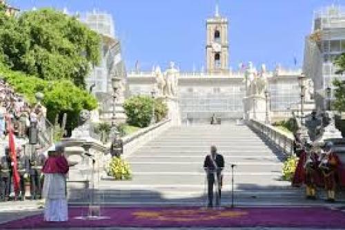 Khi đến Nhà thờ chính tòa Roma vào chiều Chúa Nhật, Đức Thánh Cha Leo XIV đã dừng chân tại Đồi Capitoline của Roma, trụ sở của chính quyền dân sự và dân chủ của thành phố, nơi ngài được Thị trưởng Roberto Gualtieri chào đón.