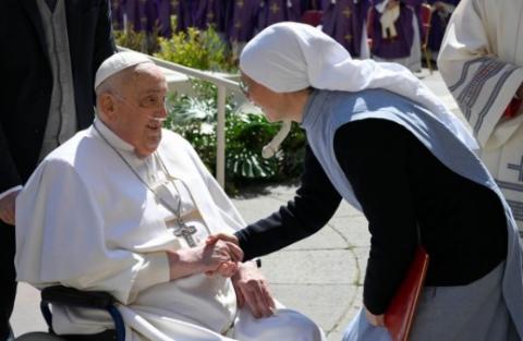 Đức Thánh Cha Phanxicô không có lịch trình xuất hiện chính thức nào vào Chúa Nhật, ngày 6 tháng Tư. Tuy nhiên, khi Thánh lễ mừng Năm Thánh của Người bệnh và Nhân viên Y tế sắp kết thúc, Đức Thánh Cha đã có chuyến viếng thăm bất ngờ đến Công trường Thánh Phêrô.
