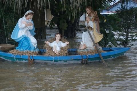 - Những hang đá Giáng Sinh đặt giữa bùn lũ;