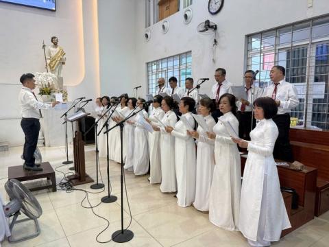 Trước đó khởi đi từ ngày thứ sáu Tuần Thánh, cộng đoàn LTXC đã tổ chức tuần cửu nhật thật sốt sáng nhằm giúp mọi người chuẩn bị tâm hồn mừng đại lễ. Để rồi hôm nay, như lời hướng ý đầu lễ, toàn thể cộng đoàn hân hoan bước vào buổi họp mừng quanh bàn tiệc thánh chiều nay “ như một dấu chỉ của Đức Tin”. Với tâm tình đó mọi người cùng đứng lên rước Linh mục chánh xứ Đa minh Vũ Ngọc Thủ tiến lên cung thánh và sốt sáng bước vào Thánh lễ.