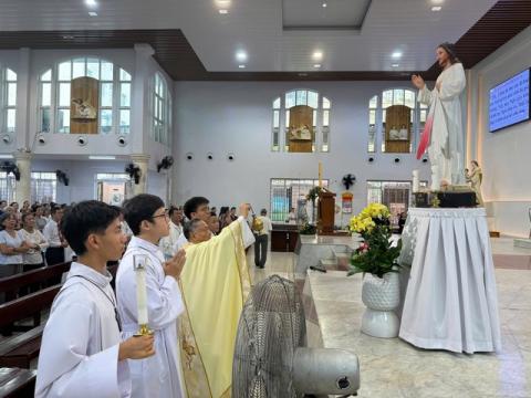 Hòa cùng niềm vui chung của cả Giáo hội hoàn vũ trong ngày đại lễ mừng kính Lòng Thương Xót Chúa ( LTXC) – Chúa nhật II Phục Sinh, lúc 15g00 ngày 12/04/2026, đông đảo bào con giáo xứ Tân Việt, cách riêng anh chị em trong cộng đoàn LTXC, đã hiện diện trong ngôi thánh đường thân yêu để cùng hiệp dâng Thánh lễ.