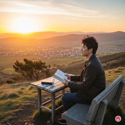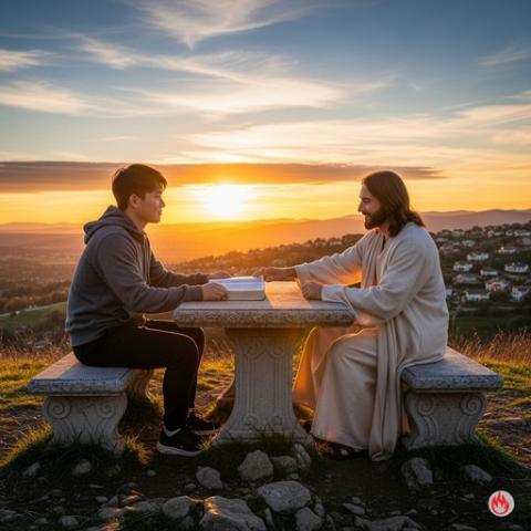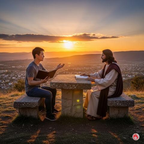 Một buổi chiều tôi ngồi trên ghế đá trong công viên vắng tên đồi với cuốn Thánh kinh nhỏ bạc màu. Hoàng hôn nhuộm vàng thung lũng xa. Trong làn gió nhẹ, tôi thấy Chúa Giêsu đến, ngồi xuống đối diện. Ngài mỉm cười, tay chạm vào cuốn Kinh Thánh như một người bạn lâu năm.