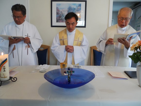 Như một công đôi chuyện, họp từ trưa thứ sáu cho đến chiều thứ bảy thì cùng nhau sang bên Đại hội công giáo. Năm nay có lẽ là xôm tụ nhất từ trước tời giờ. Có tới ba linh mục cùng đồng hành về với gia đình Inhã. Cha Đôminicô Nguyễn Hùng Sj từ Mỹ qua Âu châu giúp linh thao, cha GB. Nguyễn NgọcThế Sj từ vương quốc Đan Mạch trở về sum họp, cha mà yêu thương nhóm nhất và luôn luôn sẵn sàng sống chết với nhóm nhất là cha khả kính Phêrô Dr. Nguyễn Trọng Qúy. Tuy rằng ngài mới có 85 (tám nhăm) cái xuân xanh nhưng đặc biệt tươi trẻ và luôn yêu Chúa và yêu đời.