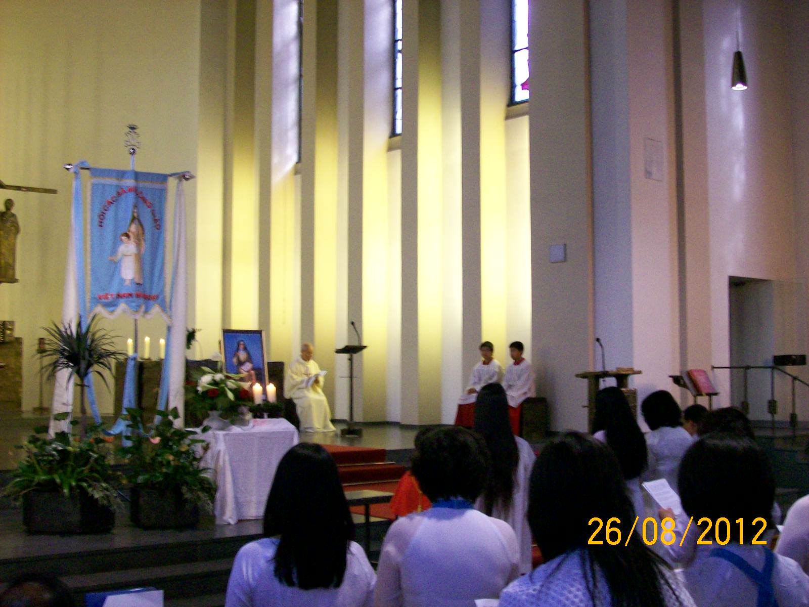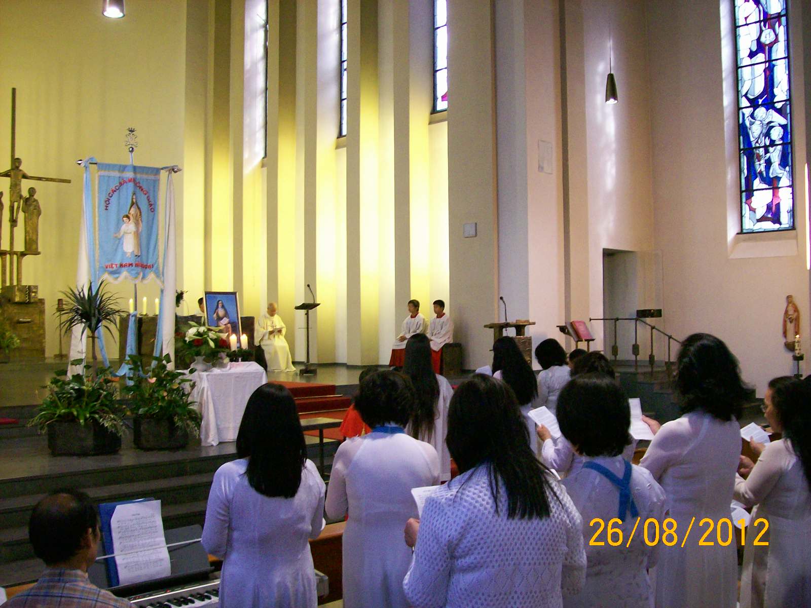 Chủ nhật 26.08.2012 Thánh Lễ kính Thánh Monica, Bổn Mạng Hội Các Bà Mẹ Công Giáo của 2 Giáo Phận Paderbon và Essen vào lúc 16giờ tại Herne, Đức Quốc. Đây là vùng trung tây của nước Đức, công đoàn công giáo Việt Nam được thành lập vào khoảng 30 về trước. LM. TS. Phêrô Nguyễn Trọng Qúy là cựu Tuyên Úy của 2 Địa Phận trong khoảng 20 năm hết mình phục vụ cho giáo dân trong vùng, ngài đã tạo dựng nên một cơ cấu và truyền thống tốt đẹp. Đây là vùng có nhiều những hội đoàn công giáo tiến hành nhất nước Đức. Mặc dù số giáo dân Việt Nam ở đây không đông bằng những vùng khác. Từ ngày ngài về hưu và LM. Phanxicô Nguyễn Ngọc Thủy kế nhiệm tới bây giờ. Mặc dù không còn trách nhiệm với cộng đồng, nhưng ngài vẫn luôn mở rộng tấm lòng bác ái và yêu thương đến tất cả mội người. Mặc dù tuổi hạc đã cao (bát thập tam) nhưng hễ đâu cần là ngài luôn sẵng sàng. nên ai cũng rất là qúy mến. Tôi phải nói thêm rằng đây là một hồng ân Chúa ban cho ngài và cho cộng đồng. LM. Phanxicô Nguyễn Ngọc Thủy và cộng đồng chắc hẳn cũng rất biết điều đó. riêng tôi cũng chân thành dâng lên Thiên Chúa lòng biết ơn vì đã ban cho giáo hôi những gương mục tử nhân lành.