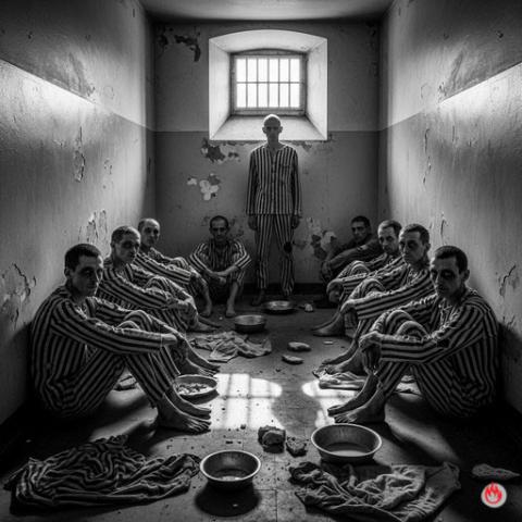 Một ngày kia, sau khi một tù nhân bỏ trốn, lính canh quyết định chọn 10 người ngẫu nhiên để chết đói trong hầm như một hình phạt. Trong số đó có một người đàn ông gào khóc: “Ôi, Vợ tôi! Các con tôi! Tôi sẽ chẳng bao giờ còn gặp lại họ nữa!”