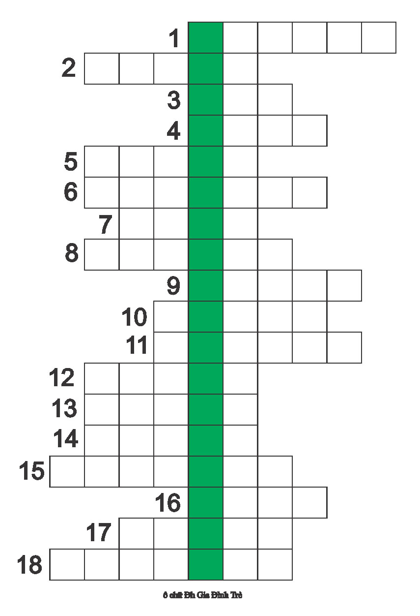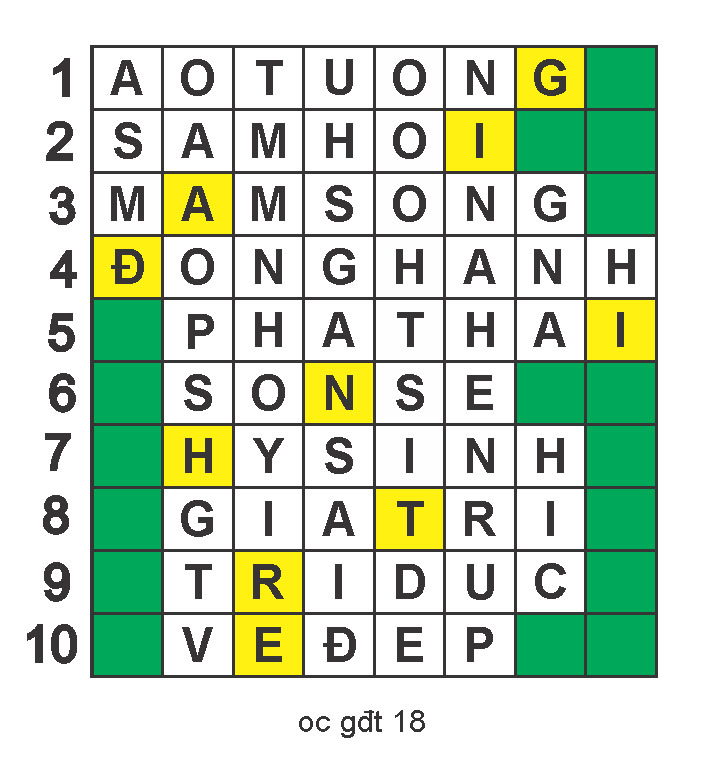 Mỗi hàng ngang có một mẫu tự từ khóa ở ô màu vàng.