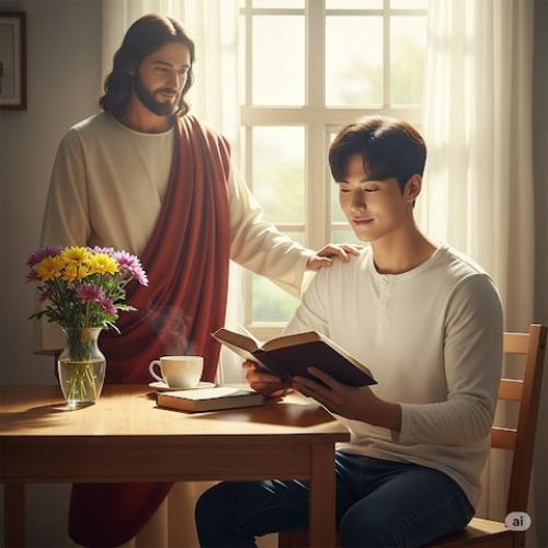 Tôi bước vào Quán nhỏ Giêsu, nắng sớm chiếu nhẹ qua rèm cửa sổ. Tôi lấy ly cà phê ngồi xuống bàn mở sách Thánh kinh ra đọc. Tôi chợt linh cảm thấy như thấy Chúa Giêsu đến bên cạnh. Chúa mỉm cười nhìn tôi, và tôi cúi đầu chào buổi sáng Chúa Giêsu:
