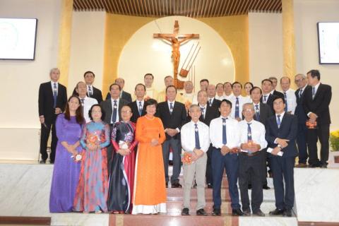 Trước khi nhận phép lành cuối lễ, ông chù tịch HĐMV thay mặt giáo xứ chúc tuổi quý cha và toàn thể cộng đoàn. Sau đó quý cha cùng toàn thể cộng đoàn nhận lộc thánh, là ý lực sống trong suốt năm.